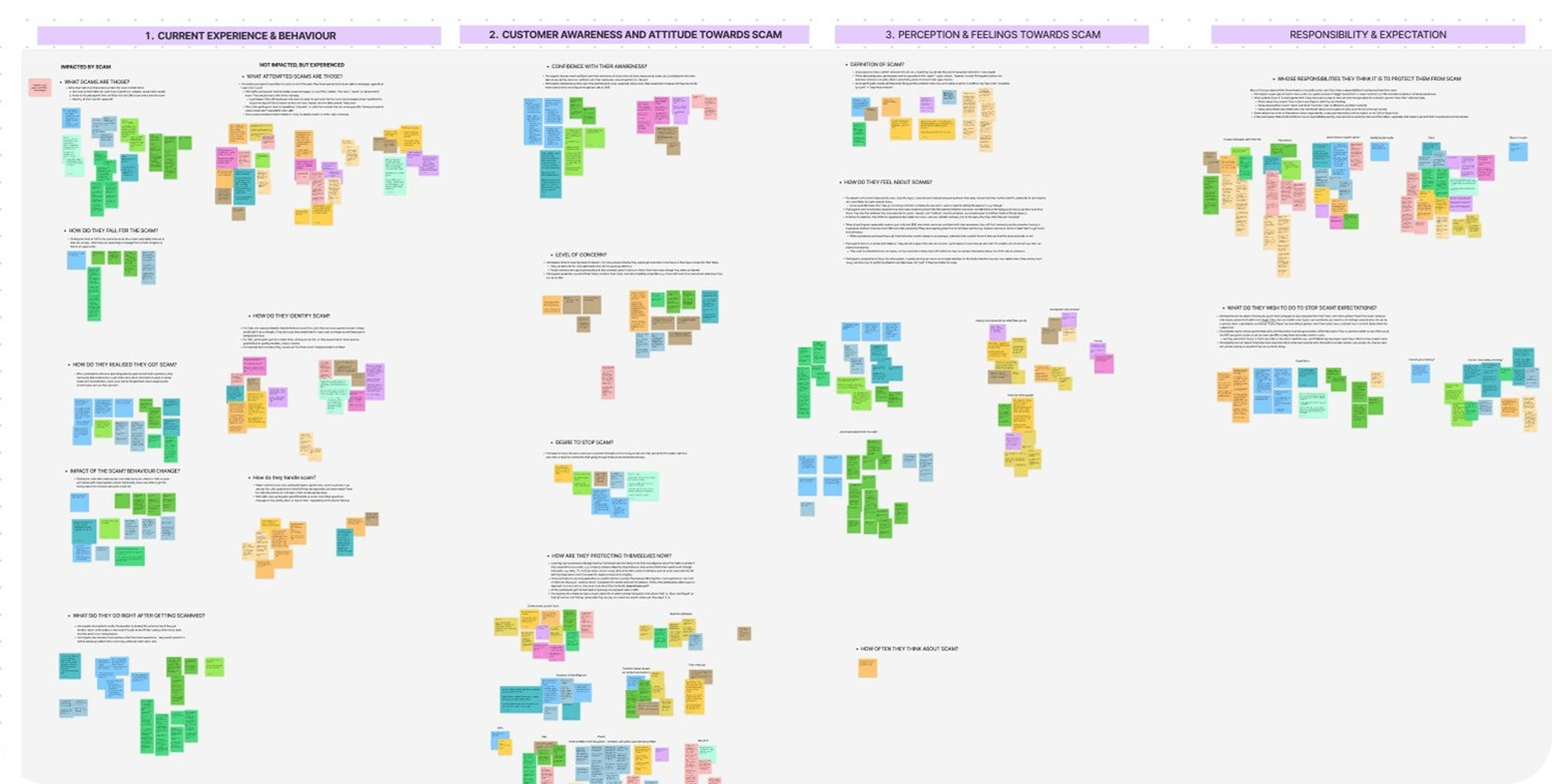 We didn’t have much insight into how customers dealt with scams, so we had to start from scratch. I spoke to 15 customers individually in 4 days, to understand their frustrations, and what they expected from Optus, along with a concept testing. With the synthesised insights, I sent out 572 surveys to quantify how many people are experiencing similar problems. This helped us to decide which issues to tackle first.