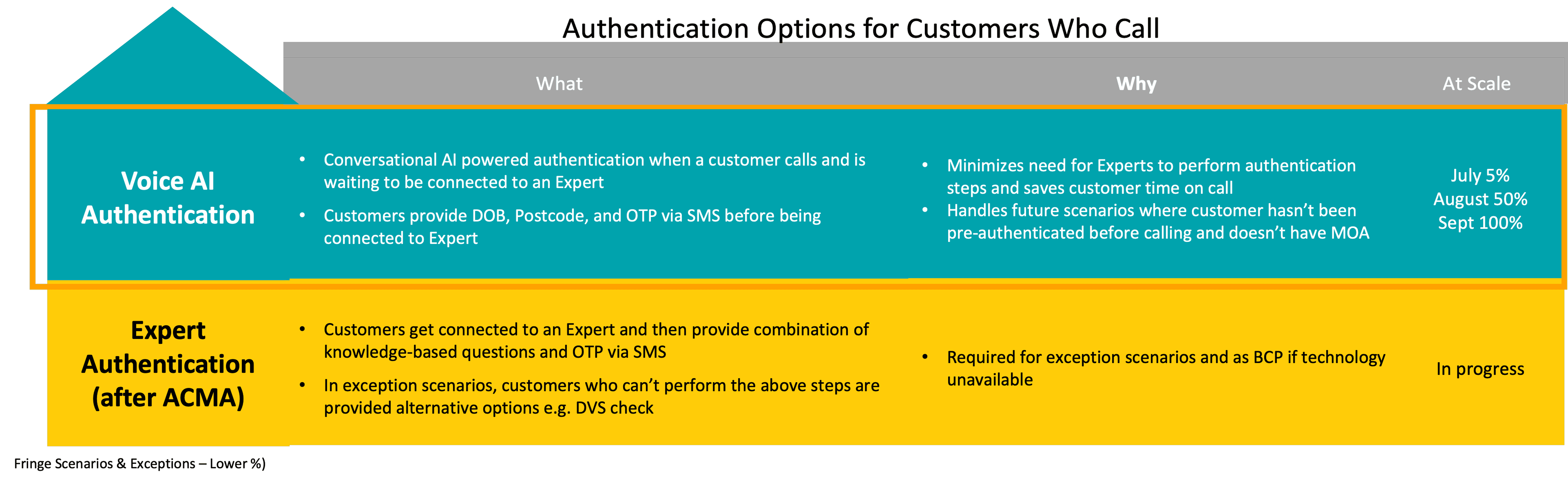 I assumed that numerical information (date of birth and postcode) are easier for customers to provide and for the AI to understand, and that customers are more comfortable with AI authentication > inputting in IVR. Very interestingly, we learnt that matured customers (>70 years old) are more likely to use speaker phone, which meant we have to ensure AI can capture speakerphone responses accurately.